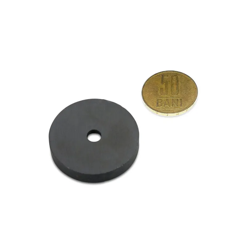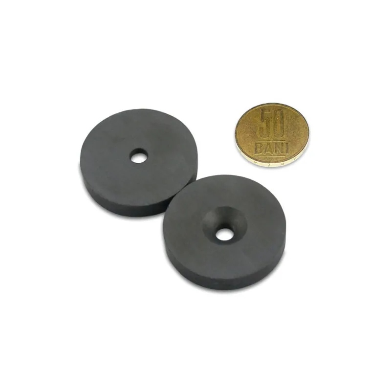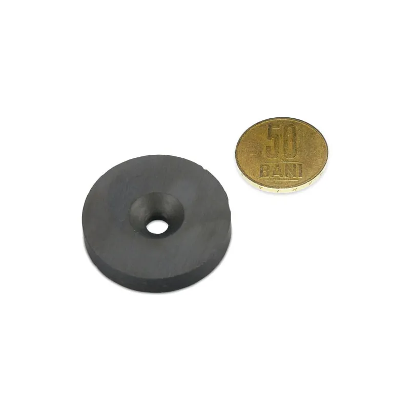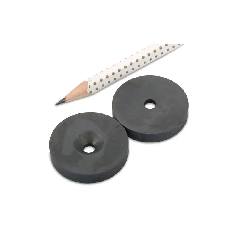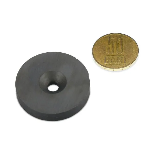 - Постоянен феритен магнит тип пръстен, подготвен за закрепване с помощта на винтове с потънал глава (6 мм)
