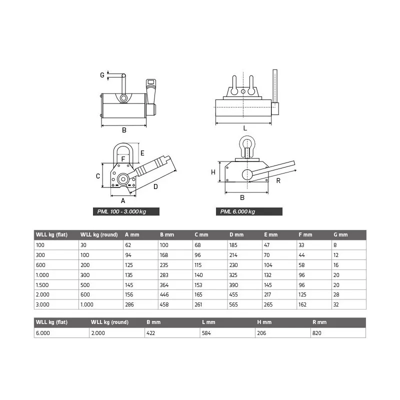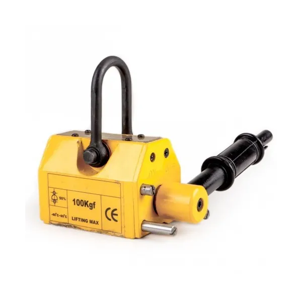Магнитно устройство за повдигане, използвано за манипулиране на стоманени плочи, блокове, щанги, цилиндри и други магнитни материали. Не изисква електричество и не е електромагнит. Увеличаването или намаляването на силата на привличане се постига чрез насочване на магнитното поле през материала, който трябва да се повдигне, чрез завъртане на манивелата на устройството. Манивелата има механизъм за блокиране/отключване, който изисква оператора ръчно да превключва между двете състояния.