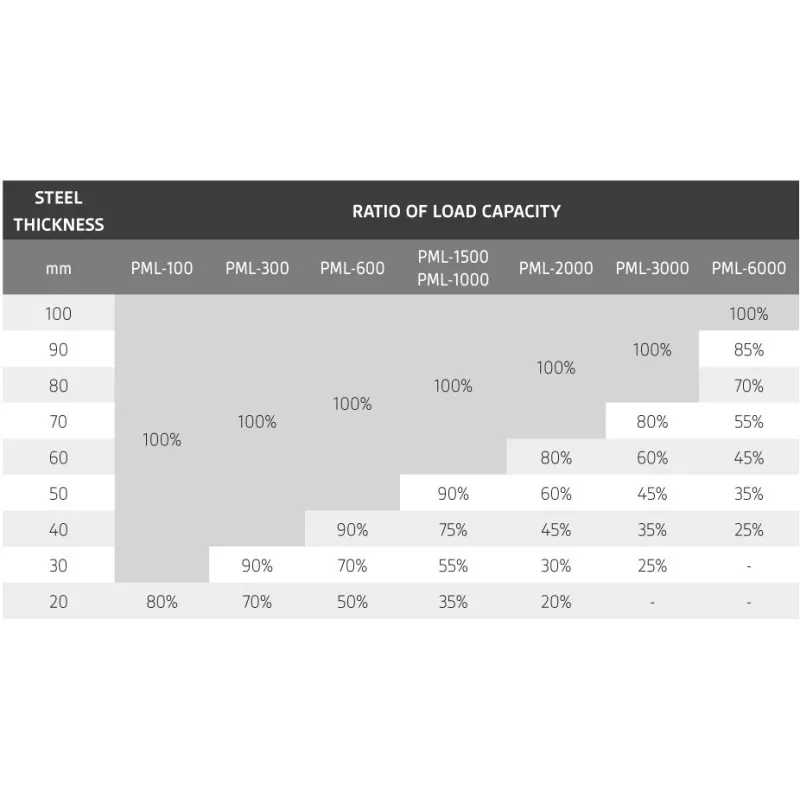 За да изберете желания продукт, посочете стойността на „Максимален капацитет на повдигане“ при селектора.