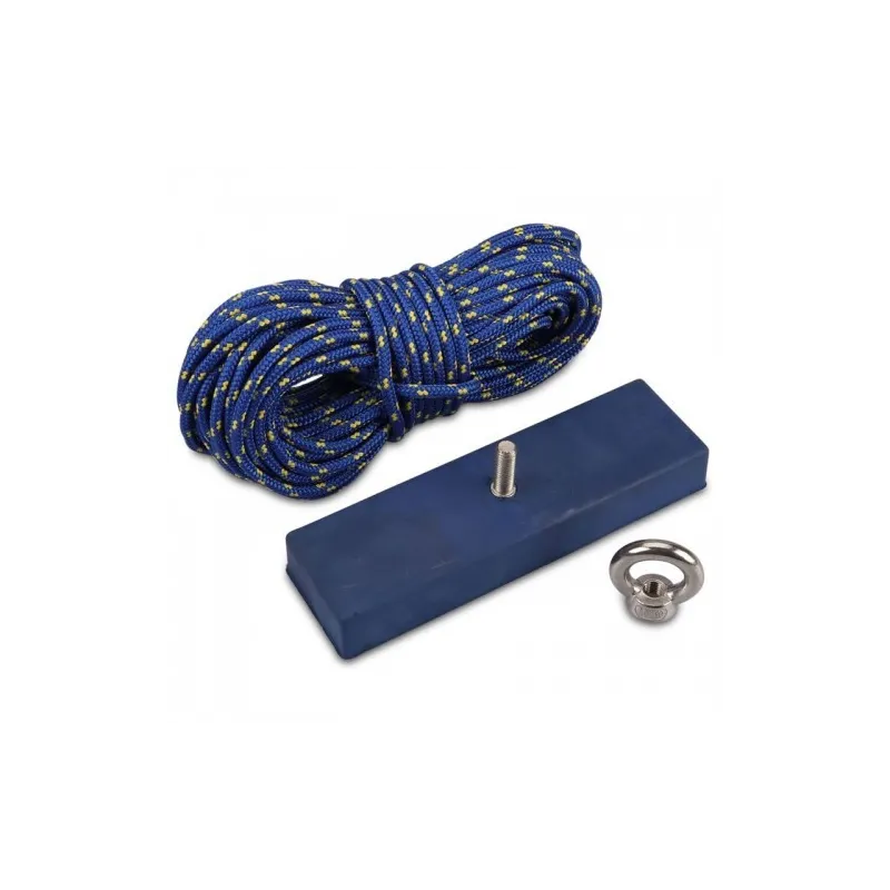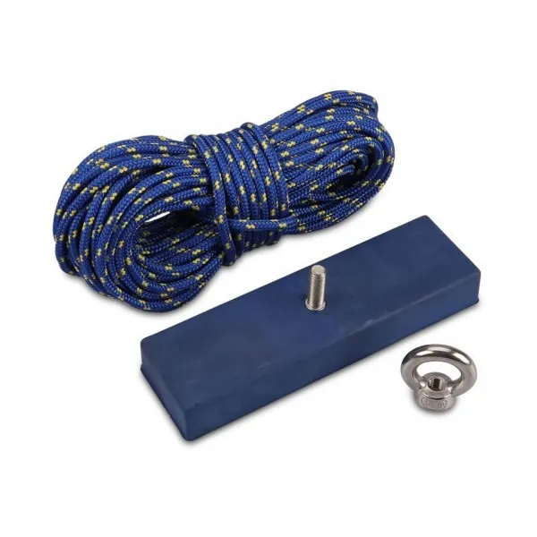 Неодимов магнит за изваждане с сила 450 кг и въже с дължина 20 метра е един от най-добрите неодимови магнити за риболов (fishing), водоустойчив, покрит с устойчив гумен слой, перфектен за любителите на подводни съкровища!