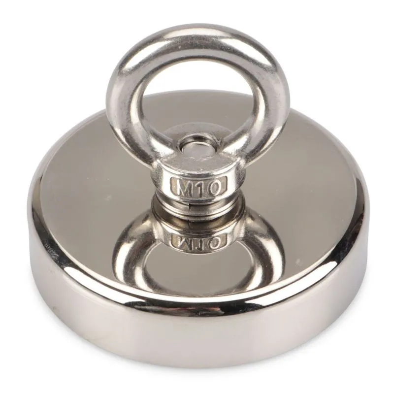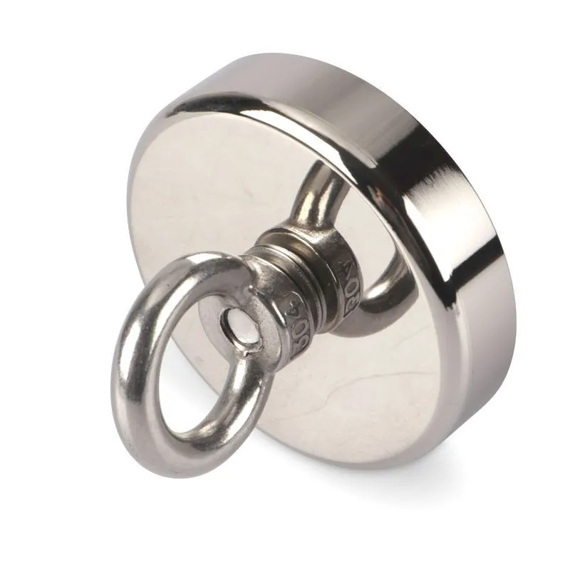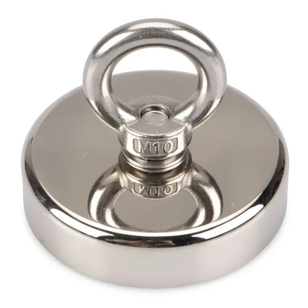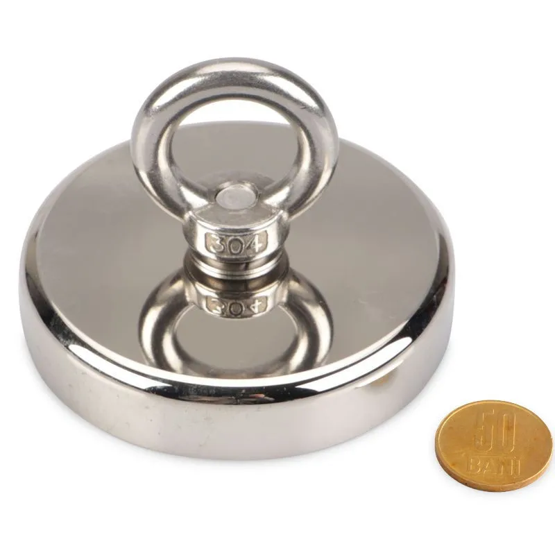 Силен неодимов магнит тип „тенджера“ D 80 мм с пръстеновиден куки, предназначен за риболов – открийте здравината на нашия магнит тенджера с пръстеновиден куки, който се отличава с впечатляваща сила от 250 кг, измерена при идеални лабораторни условия. Този магнит не само превъзхожда в контролирани тестове, но и показва забележителна ефективност в практическа употреба, като е надежден помощник дори в по-предизвикателни среди, като под вода.