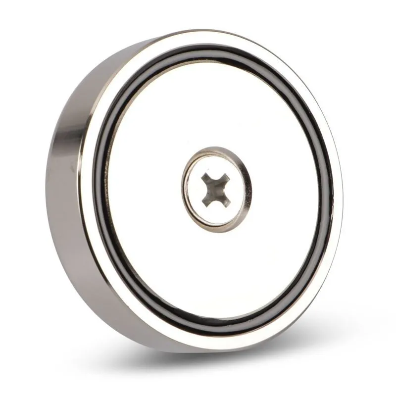 За разлика от грубите неодимови магнити като блокове, дискове или пръстени, магнитите тип тенджера са магнитни системи, т.е. готови магнитни продукти. Те са създадени да максимизират магнитната сила при контакт, подобно на магнитна вендуза. Металният корпус, в който е вграден магнитният сърцевина, служи както за защита, така и за заграждане на магнитното поле. Поради това магнитите тип тенджера доставят по-висока сила при контакт, но привличат малко или изобщо не привличат от разстояние. Ако ви трябва силен магнит за приложения, изискващи привличане от разстояние, като металдетектори или магнитни сепаратори, НЕ избирайте магнит тип тенджера, тъй като няма да са полезни. За такива задачи изберете неодимови блокове или дискове.