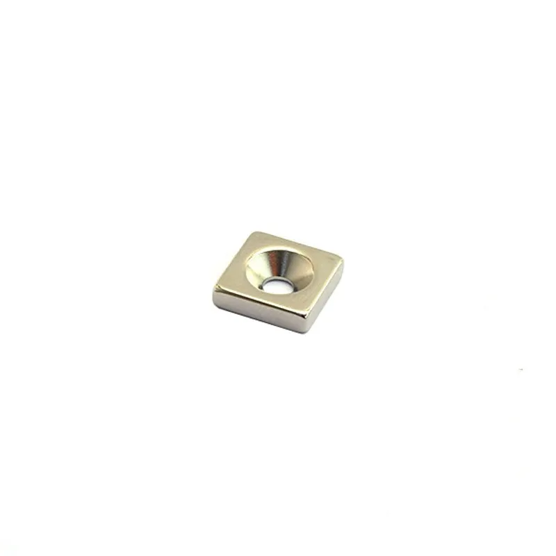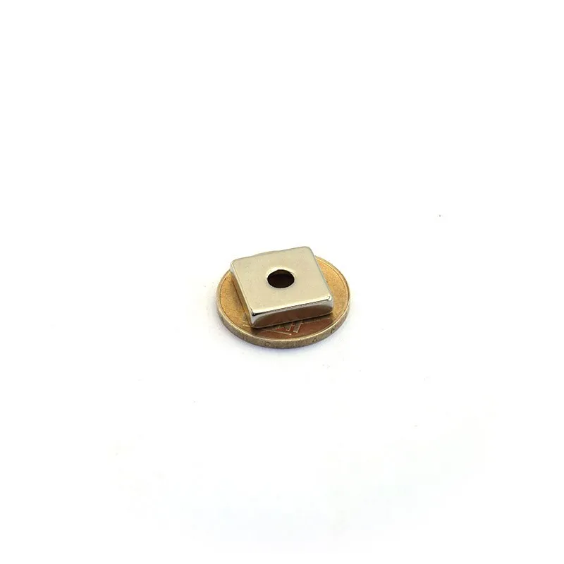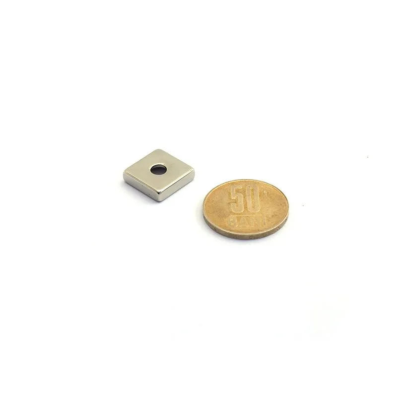 Неодимов магнит блок 15 x 15 x 4 мм с вдлъбната дупка D4,5 / D9,6