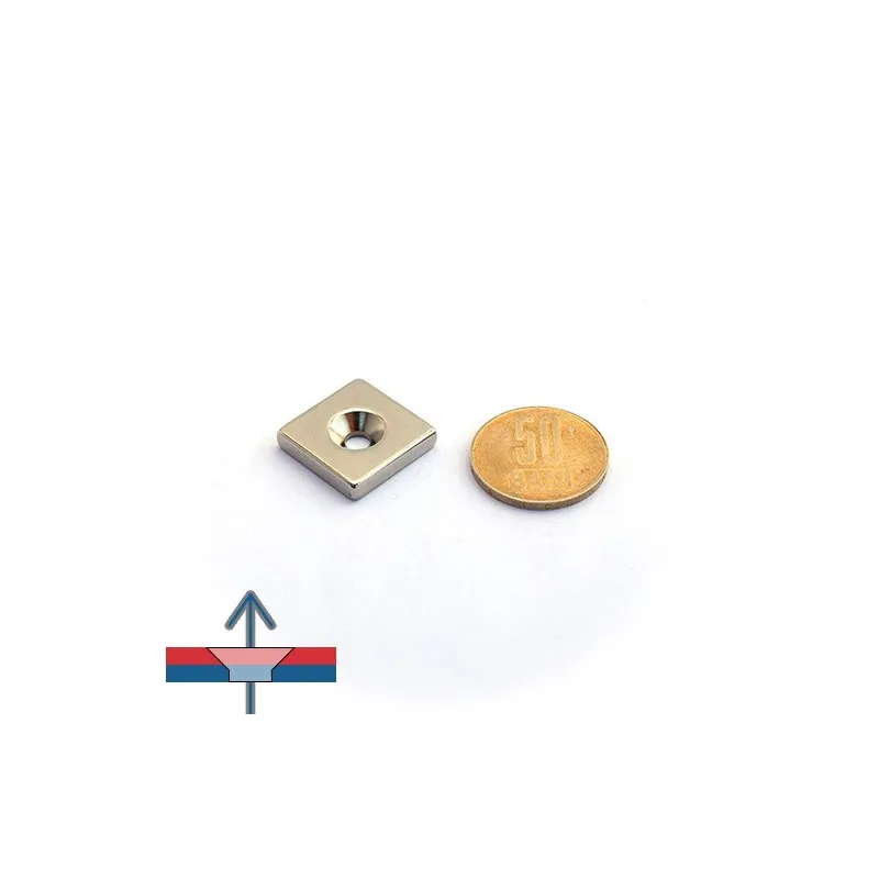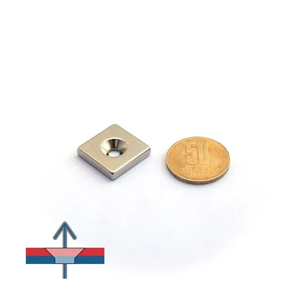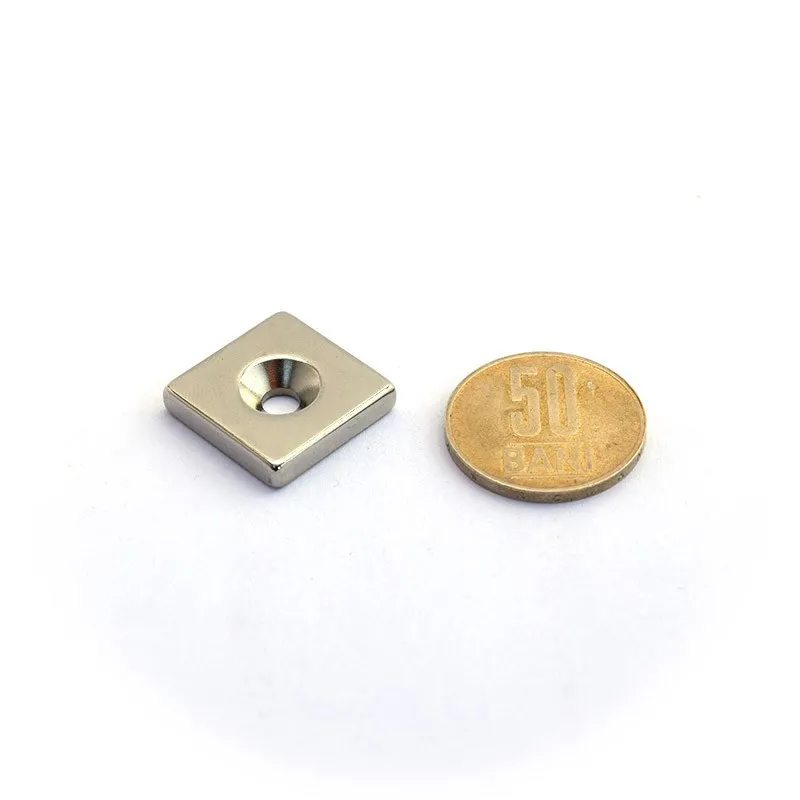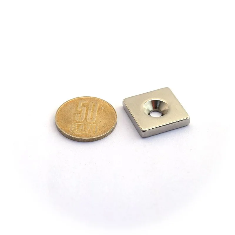 Неодимов магнит блок 20 x 20 x 4 мм с вдлъбната дупка D4,5 / D9,6