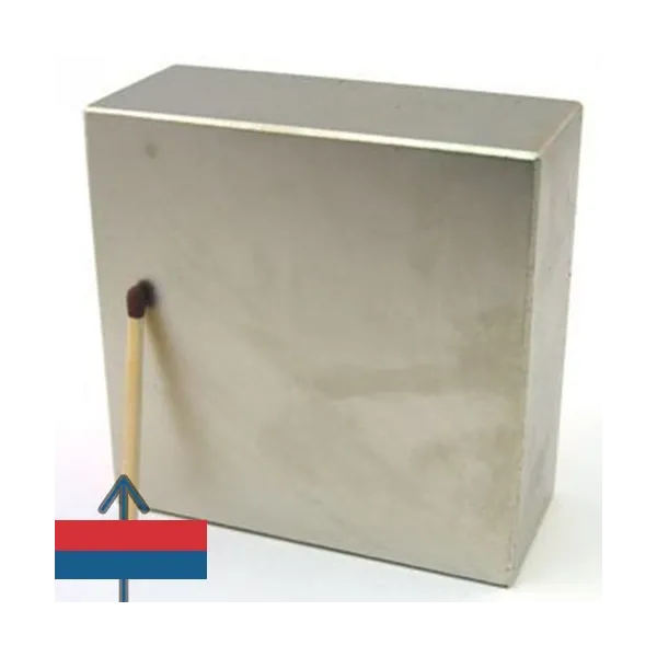 Постоянен блок неодимов магнит, никелирано покритие, N48, приблизителна сила 175 кг.