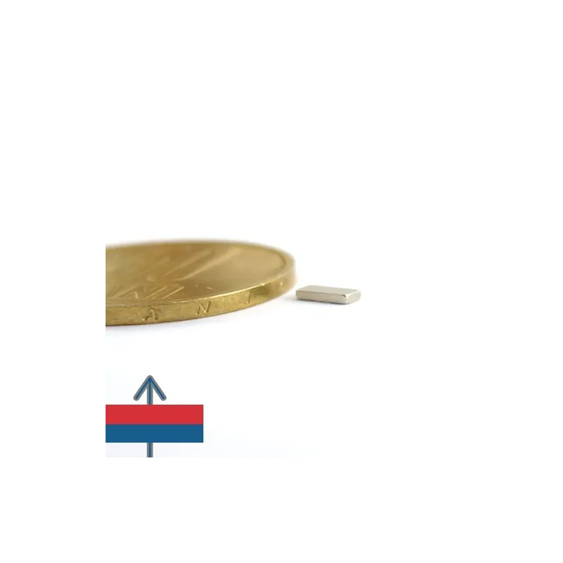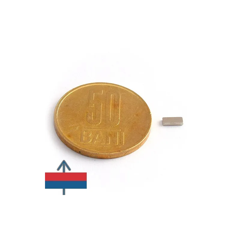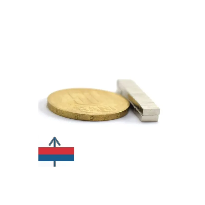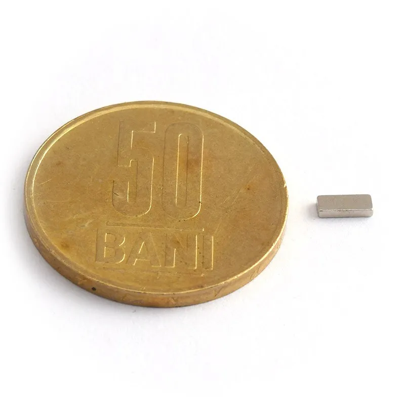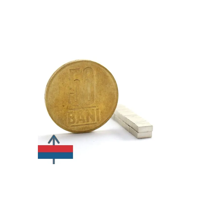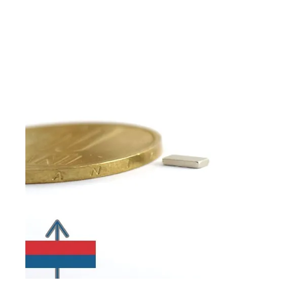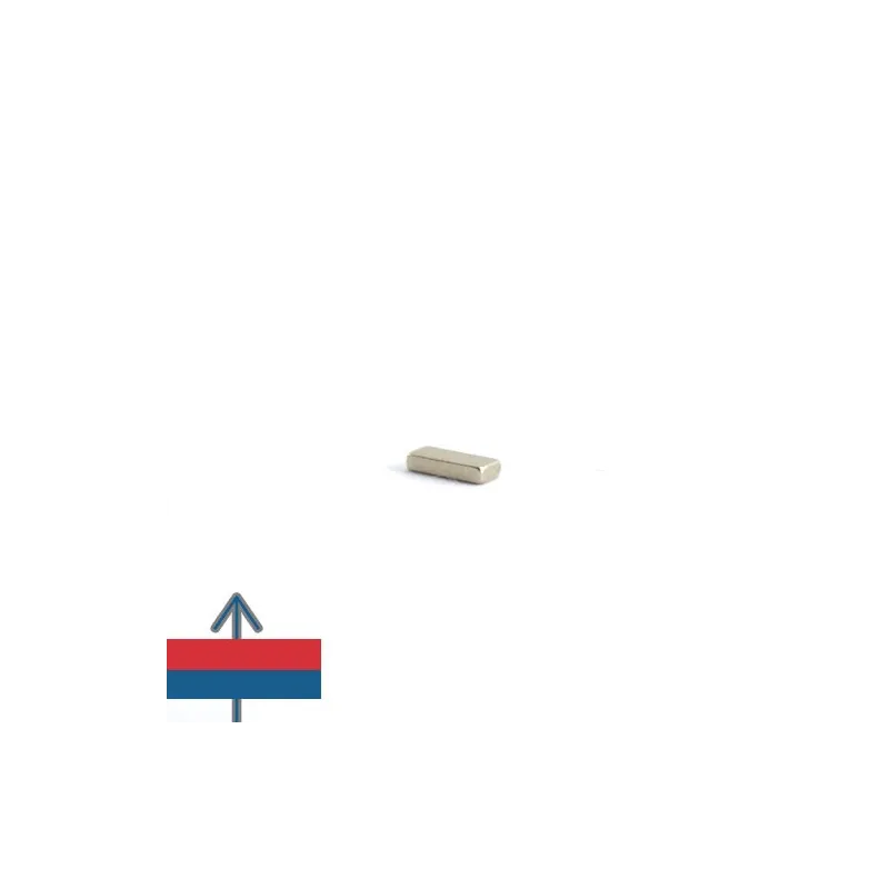 Мощни неодимови магнити във форма на блокове, покрити с никел, магнитизация N52, приблизителна сила 0,8 кг. Полюсите на магнита са на лицевите страни 10 x 4 мм. Често се използват в проекти, изискващи силно закрепване с магнит, който е лесен за манипулиране.