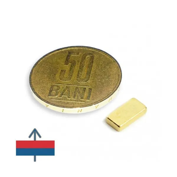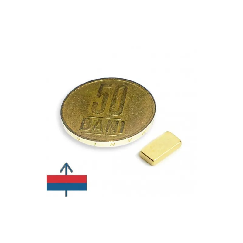 Позлатен неодимов магнит блок 10 x 5 x 2 мм