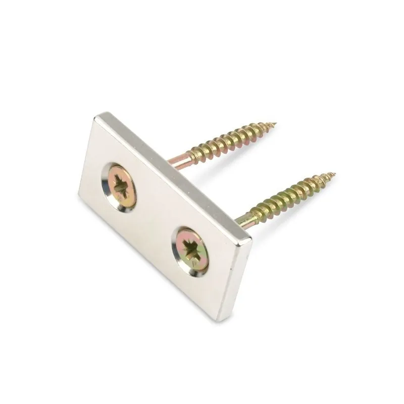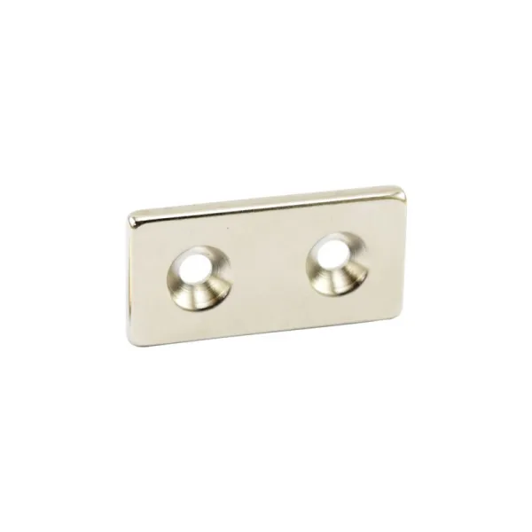 Неодимови магнити с основна форма паралелепипед, което ги прави много подходящи. Те са снабдени с два вградени отвора, които позволяват прикрепване с винтове. С дебелина само 4 мм, тези магнити са много дискретни и полезни при изграждането на мебели и модерни кухни, при създаването на изложбени рафтове в магазини и за окачване на разнообразни предмети като инструменти, табели и други.