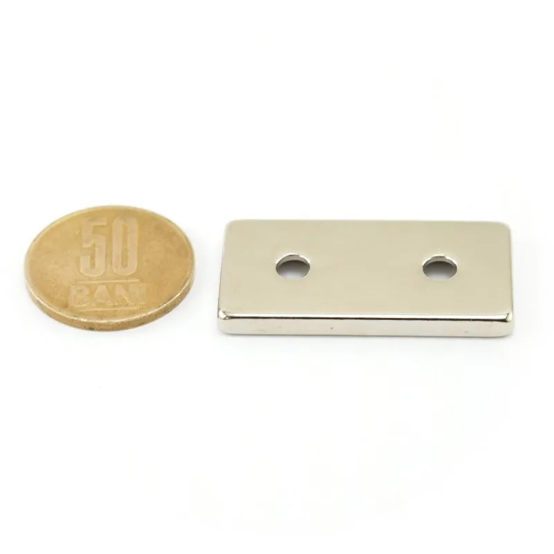 Неодимов магнит блок 40 x 20 x 4 мм с вдлъбнати дупки D4,5 / D9,6