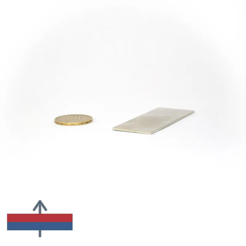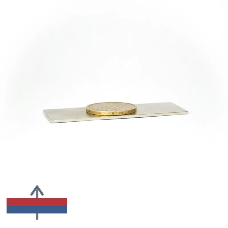 Мощен неодимов магнит, блокова форма, покрит с никел, N40, приблизителна сила 200 кг. Неодимови магнити с най-добро съотношение сила/обем. Полюсите на магнита са на лицевите страни 100 x 50 мм.