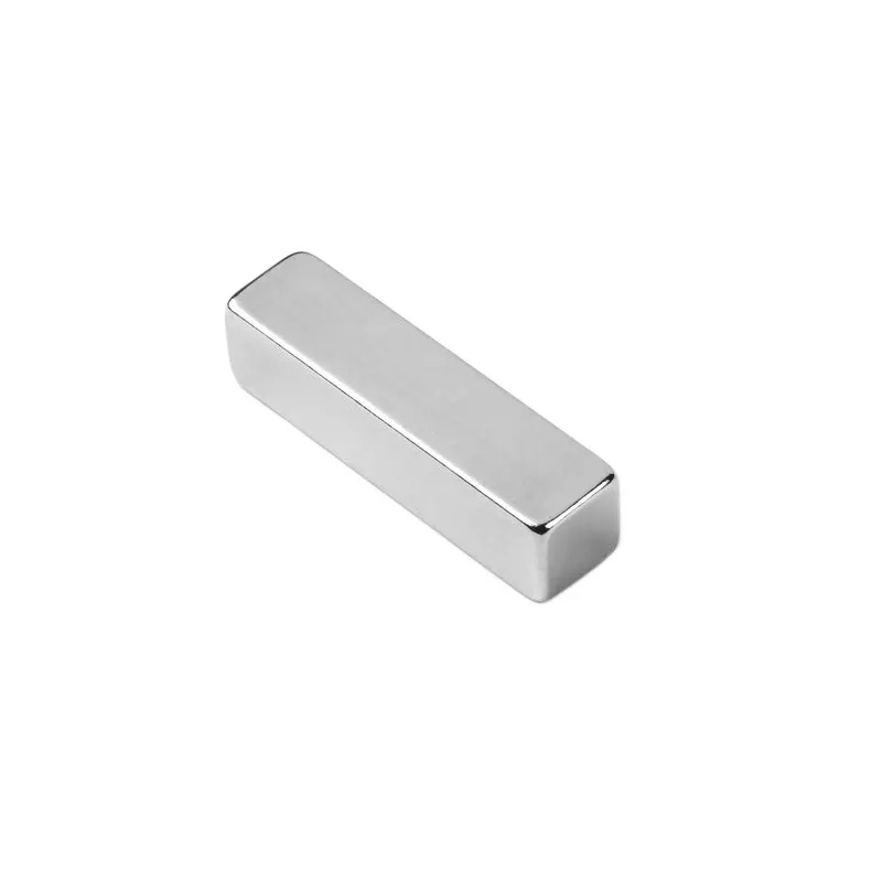 Неодимови магнити тип блокове с размери 100 x 50 x 10 мм и магнитизация N48. Тези мощни магнити са изработени от сплав NdFeB (неодим, желязо и бор) и осигуряват сила на привличане от приблизително 65 кг, измерена при идеални условия на директен контакт и издърпване перпендикулярно върху гладка феромагнитна повърхност с дебелина над 20 мм.