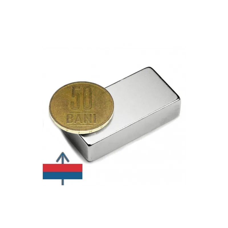 Силен неодимов магнит, блок форма, никелирано покритие, N45, приблизителна сила 26 кг.