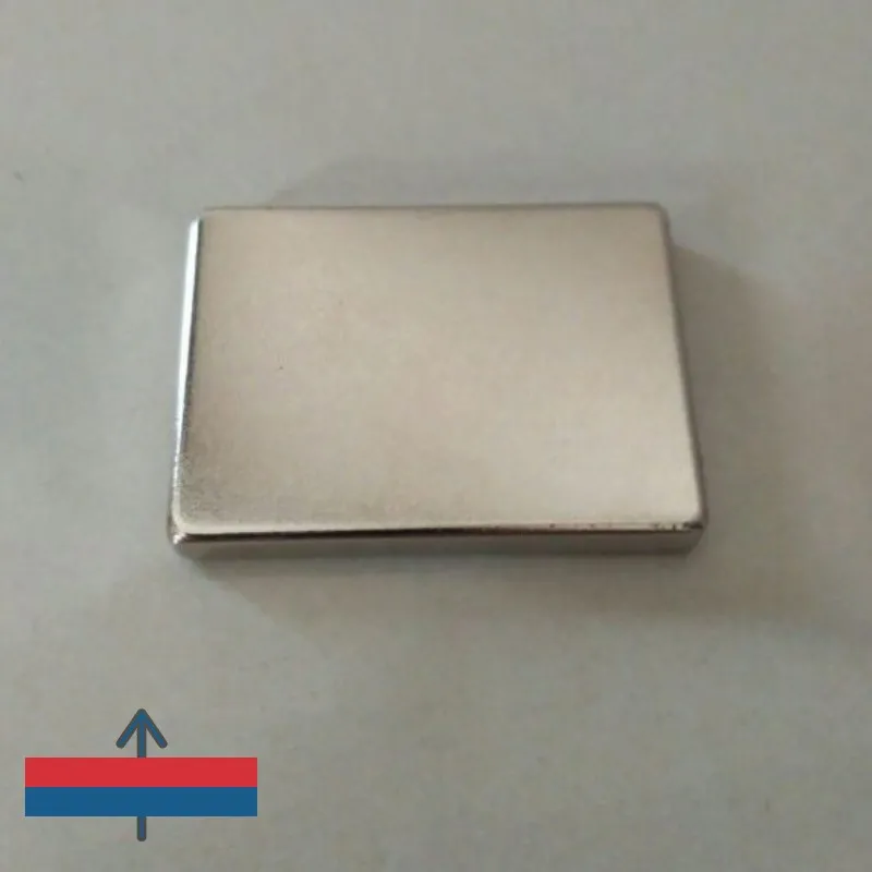 Мощен неодимов магнит, блокова форма, покрит с никел, N45, приблизителна сила 1,5 кг. Неодимови магнити с най-добро съотношение сила/обем и най-голяма остатъчна магнитна сила. Полюсите на магнита са на лицевите страни 8 x 8 мм.