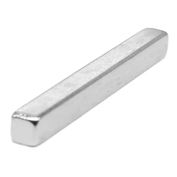 Тези мощни неодимови магнити с форма на блок са изработени от висококачествен материал с мощно намагнитване N48. С размери 50 x 5 x 5 мм, тези магнити предлагат сила на привличане от 5,5 кг, което ги прави перфектни за разнообразни приложения – от проекти „направи си сам“ до технически и индустриални употреби. Полюсите на магнита са разположени на една от страните с размери 50 x 5 мм.