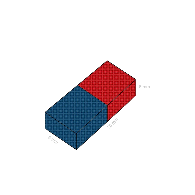 Неодимов магнит блок 25 x 6 x 6 мм N52 надлъжно