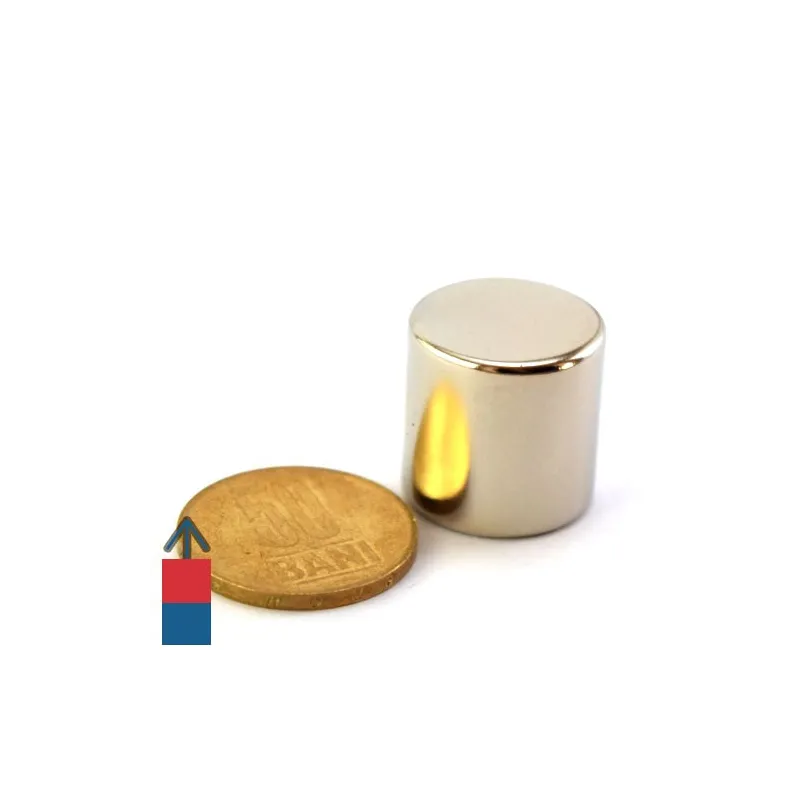 Силен и здрав неодимов магнит във форма на цилиндър/диск, никелирано покритие, N52, приблизителна сила 16,5 кг
