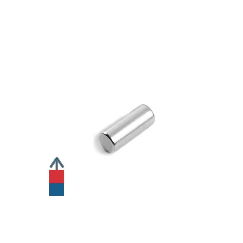 Силен неодимов магнит, цилиндрична форма, никелирано покритие, магнитизация N52, приблизителна сила 1,3 кг