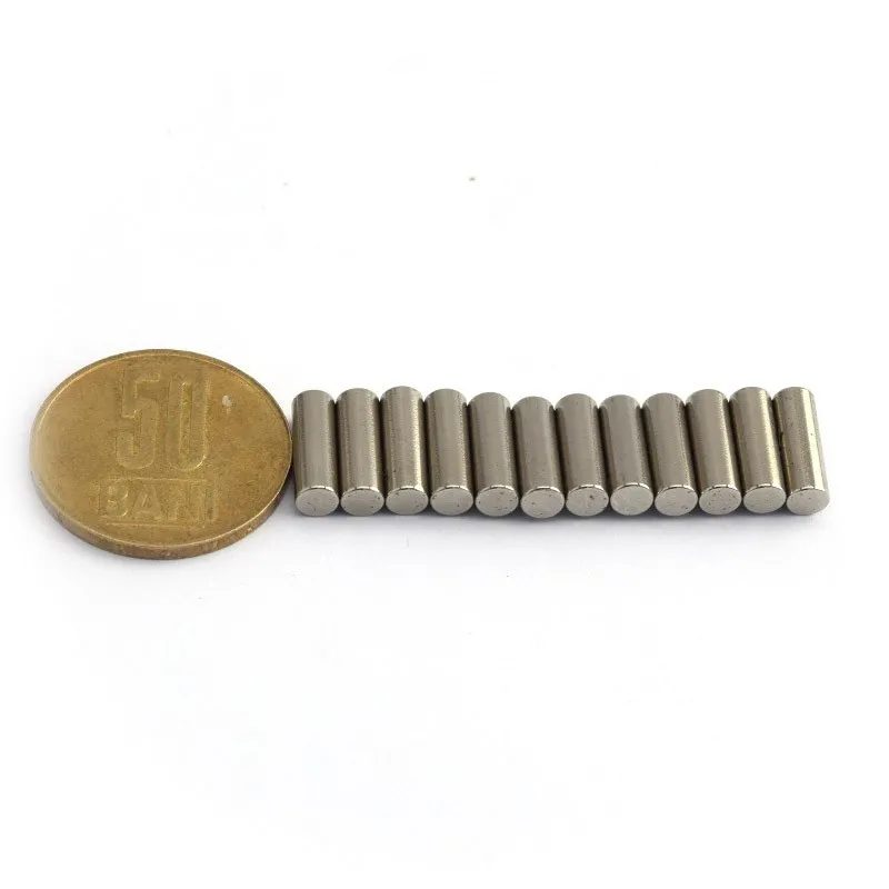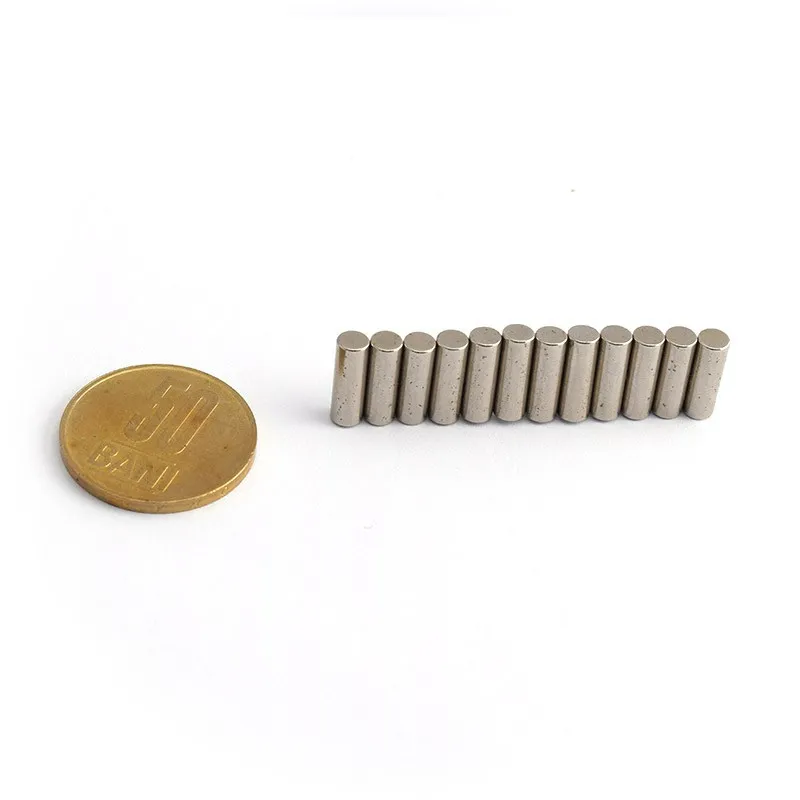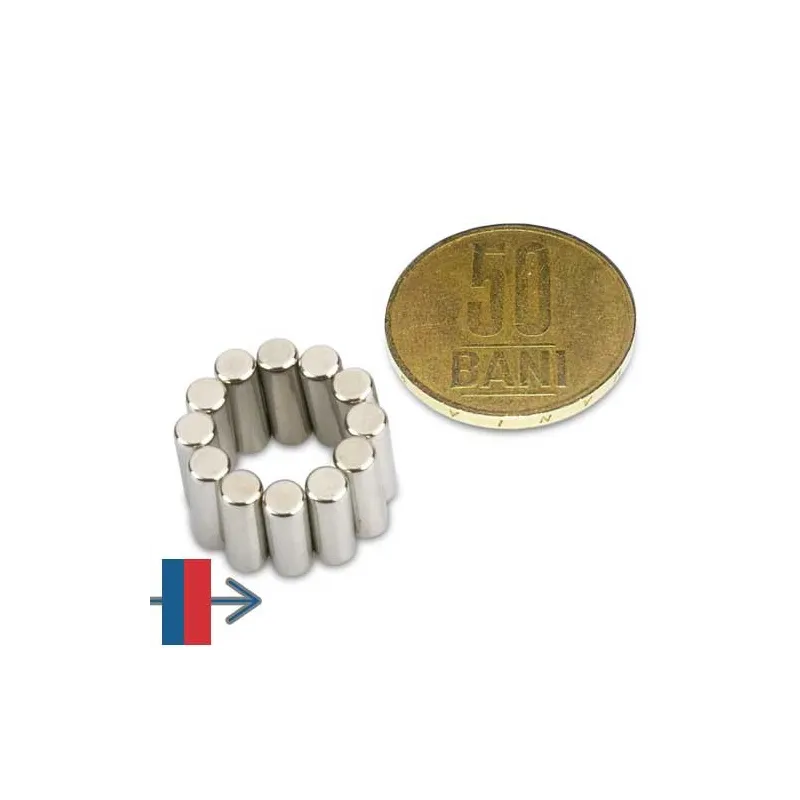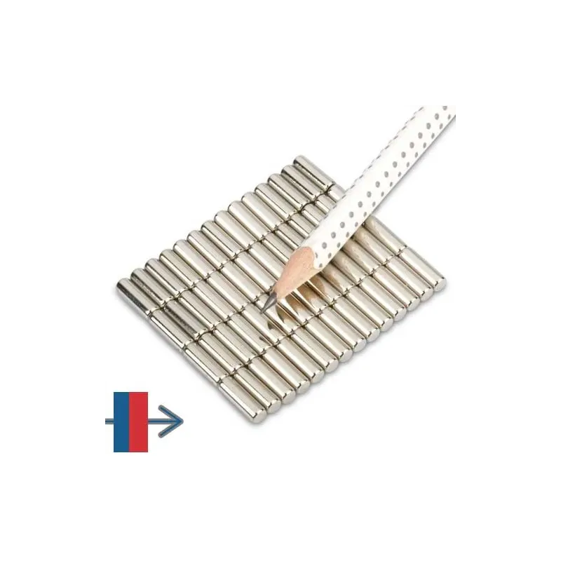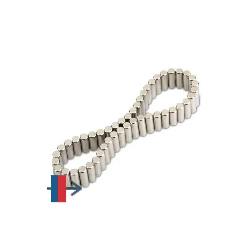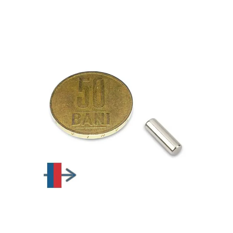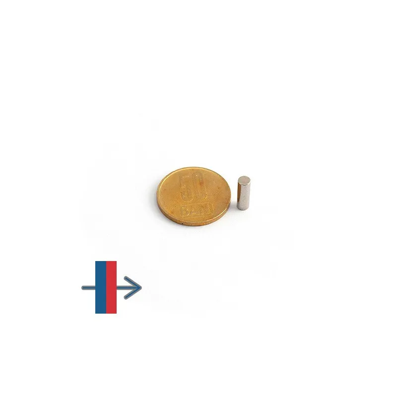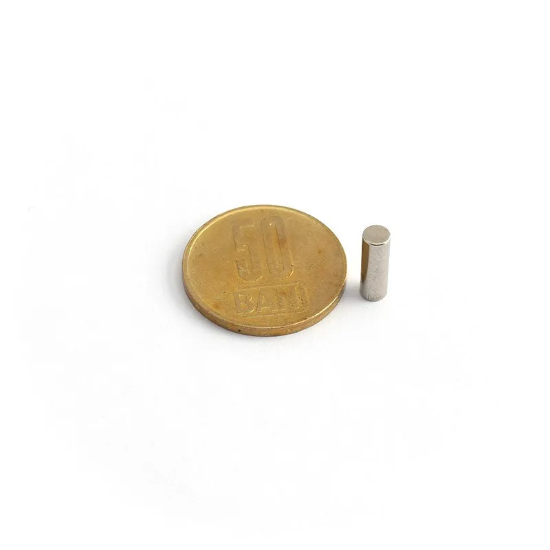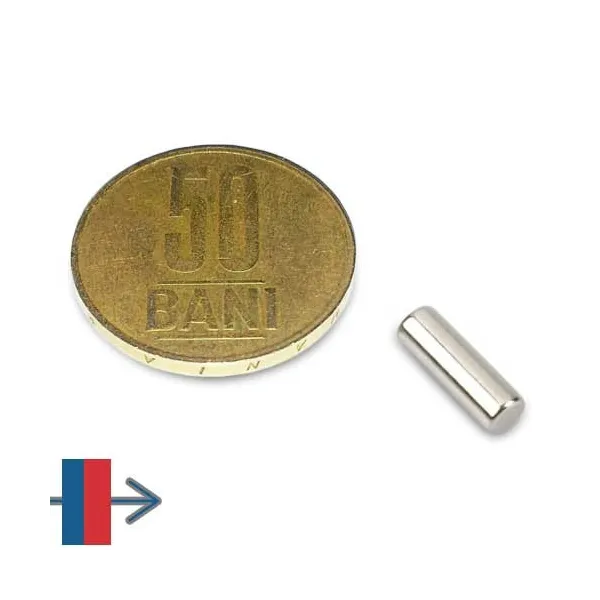 Силен неодимов магнит, цилиндрична форма, никелирано покритие, N45M, приблизителна сила 1,3 кг, с диаметрална магнитизация.