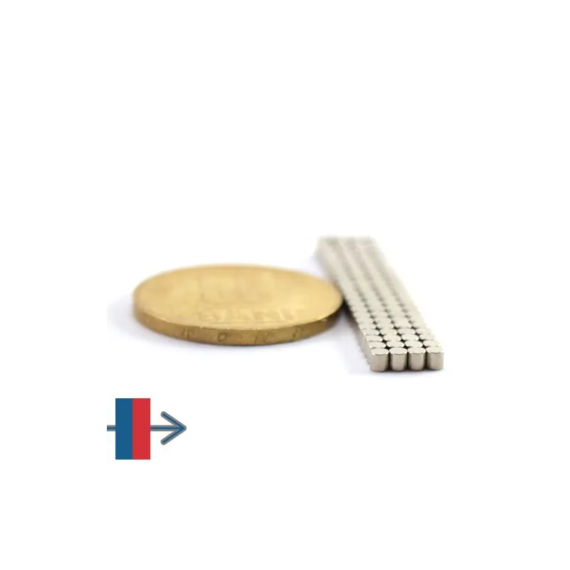 Неодимови магнити тип диск, изключително малки и с диаметрална магнитизация. Терминът „диаметрална магнитизация“ означава, че двата полюса са разположени по ръбовете на магнита. С други думи, тези магнити имат сила на привличане встрани и се свързват един с друг, образувайки кръг.