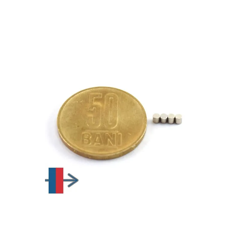 Неодимов магнит цилиндър / диск 2 x 2 мм диаметрално