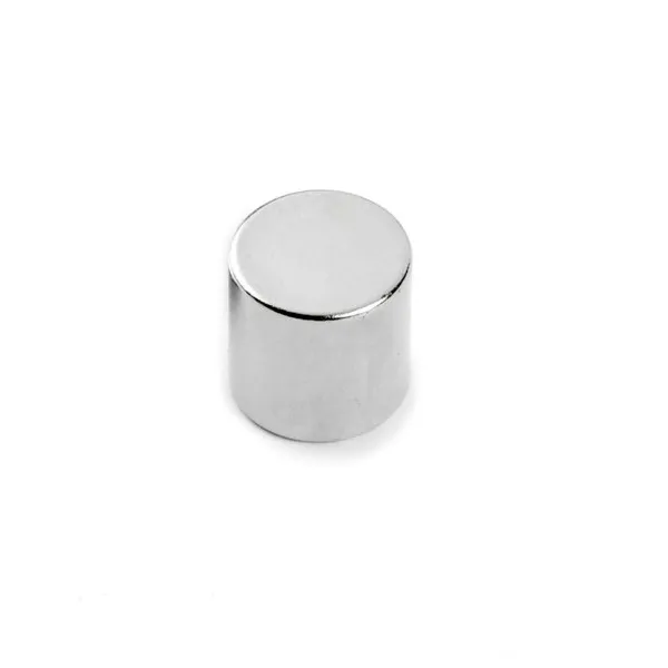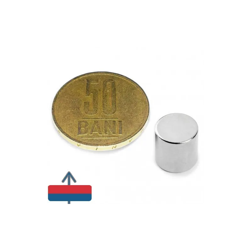Мощен неодимов магнит, цилиндрична / диск форма, покрит с никел, магнитизация N52, приблизителна сила 11,5 кг. Тези неодимови магнити имат най-силната магнитизация сред търговските магнити.