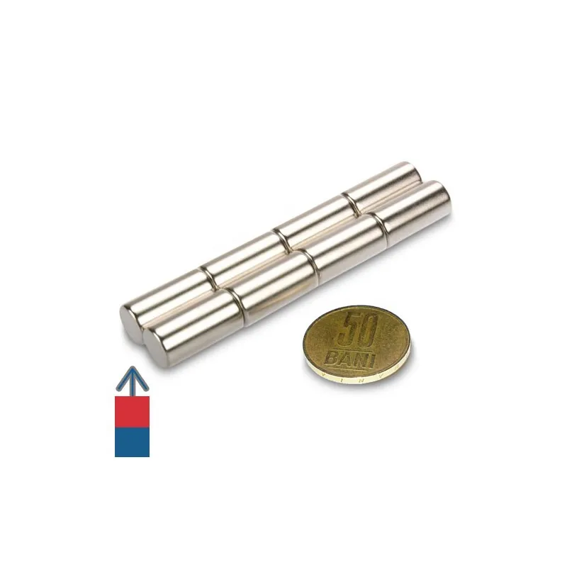 Силни неодимови магнити с цилиндрична форма, никелово покритие, N52, със сила над 5 кг.