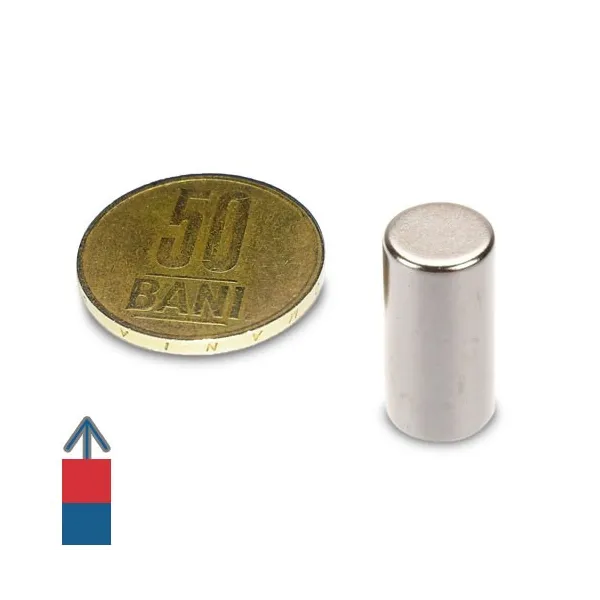 Силен цилиндричен неодимов магнит с пропорция на размерите 1:2, което го прави ефективен и лесен за манипулиране. Посоката на намагнитване е осева, с полюси на двата плоски кръгли края. Магнитът е покрит с защитен слой никел-мед-никел, а сърцевината от неодим има най-силното магнитно намагнитване. Примери за приложения на този магнит включват: