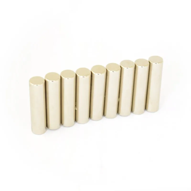 Силен неодимов магнит с цилиндрична форма, диаметрално намагнитване, покрит с никел, намагнитване N52, с приблизителна сила от 8,1 кг.