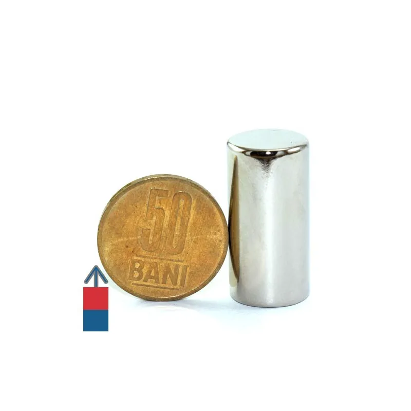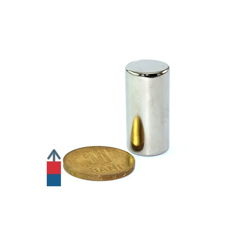 Постоянен неодимов магнит тип цилиндър с диаметър 15 мм и височина 30 мм, здрав, мощен и устойчив на демагнитизация. Намагнитването е осево, което означава, че полюсите са върху двете плоски кръгли лица на цилиндъра, така магнитът привлича от краищата. Магнитът е покрит с никелов слой, който защитава неодимовото ядро от директното въздействие на корозивни фактори. Нашите клиенти често избират този вид неодимов магнит за: