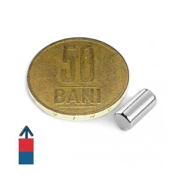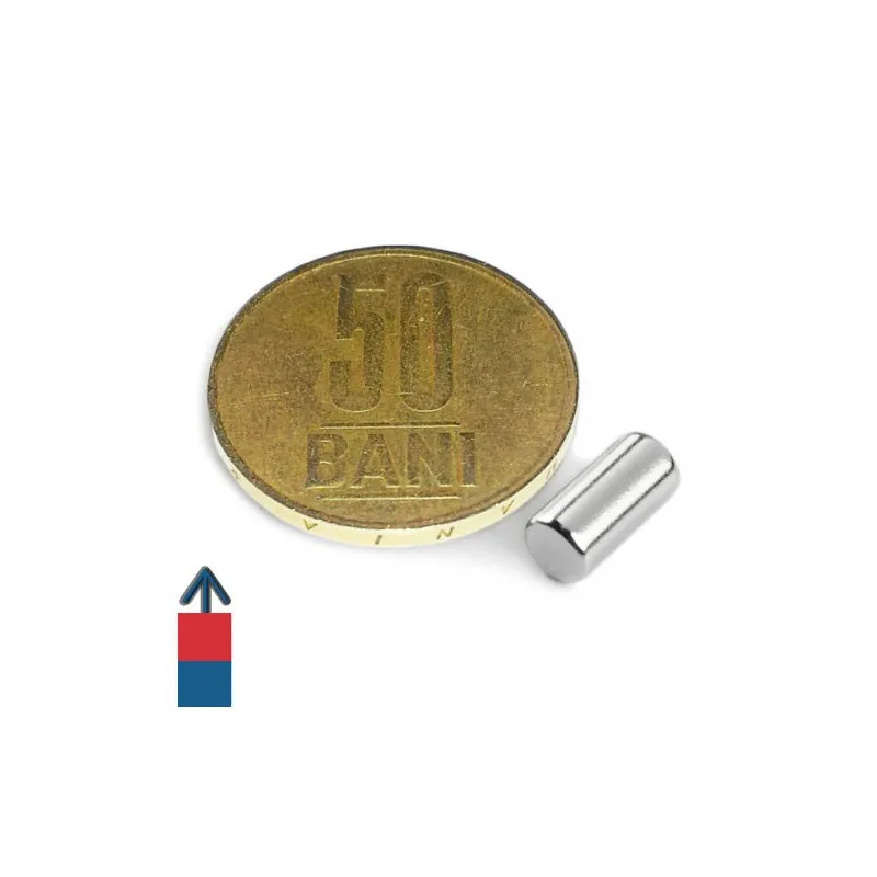 Постоянни неодимови магнити цилиндрична форма с мощна магнитизация N52. Посоката на магнитизация е осева, което означава, че силата е концентрирана на краищата на магнита. Един такъв неодимов цилиндър тежи само 1,5 г и може да поддържа почти 1 кг. Този тип неодимови магнити обичайно се използват за: