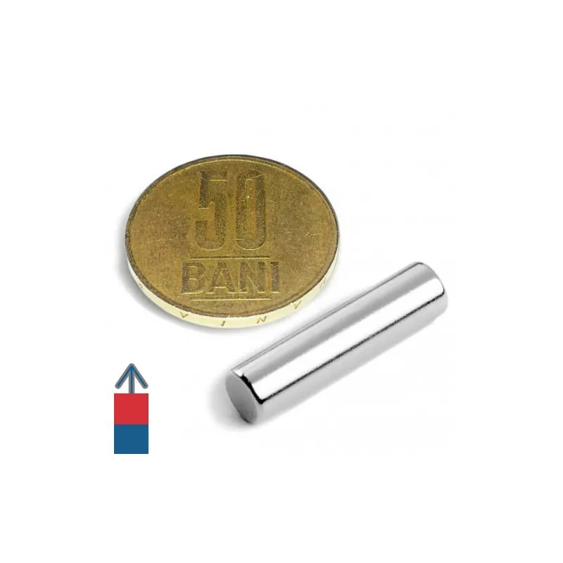 Неодимови магнити цилиндрична форма с магнитизация N45. Посоката на магнитизация е осева, което означава, че силата е концентрирана на краищата. Всеки такъв цилиндър е достатъчно мощен да поддържа без проблеми още 80 цилиндъра от същия тип. Добри магнити за разнообразни приложения: