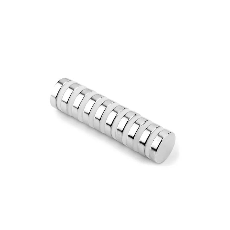 Мощни неодимови магнити, диск форма, покрити с никел, намагнитеност N42, приблизителна сила 1,2 кг. Идеални за използване като магнити за хладилник.