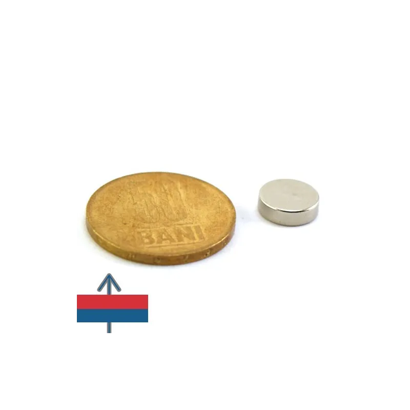 Силен неодимов магнит, дискова форма, никелирано покритие, N42, приблизителна сила 1,7 кг
