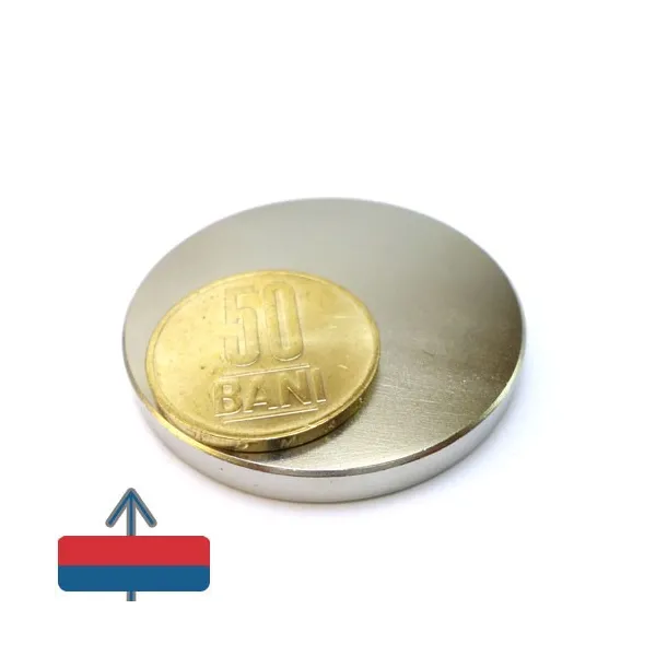 Силен неодимов магнит, дискова форма, никелирано покритие, N45, приблизителна сила 17 кг