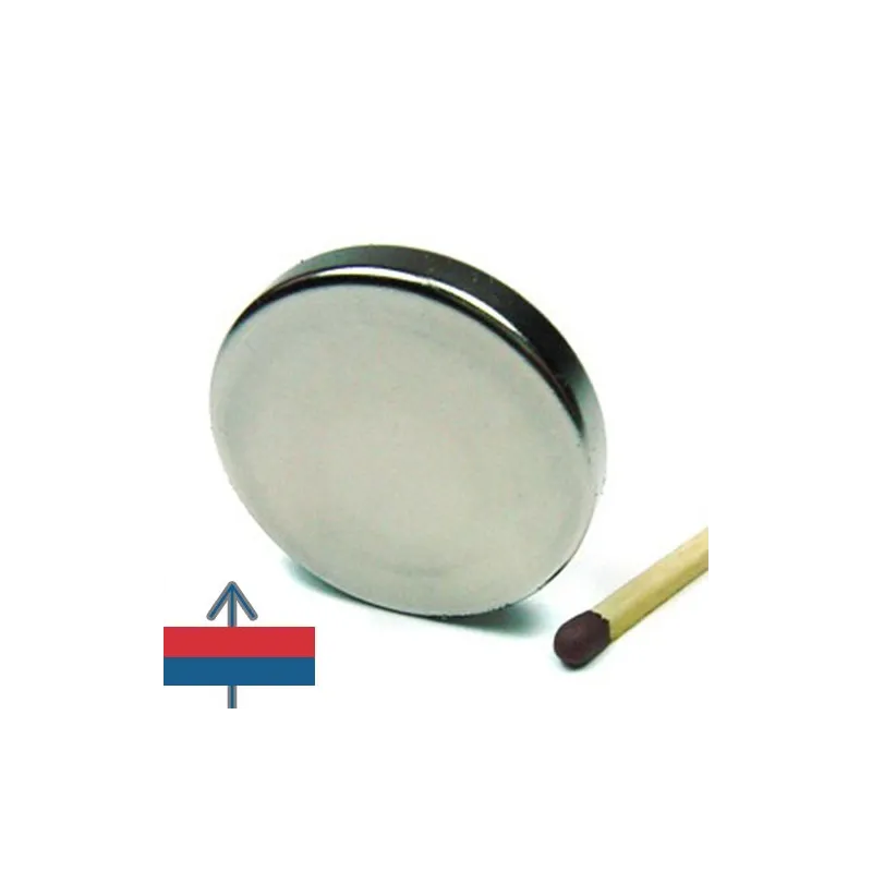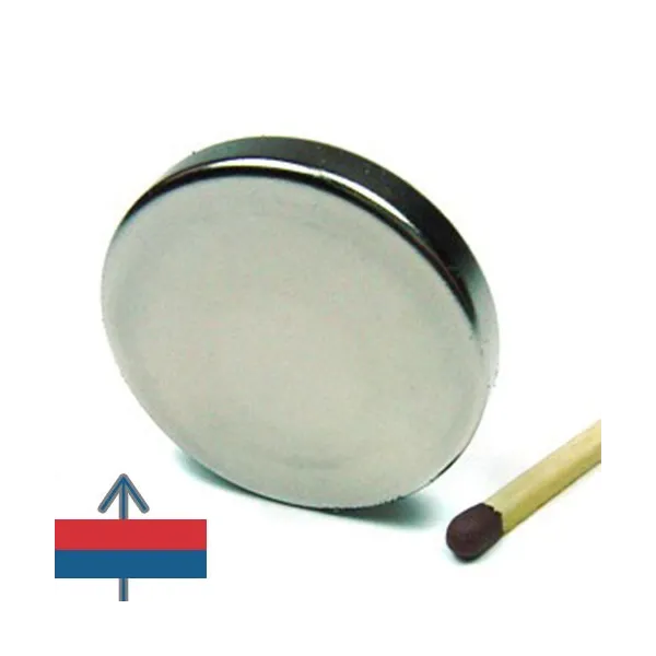Мощен неодимов магнит, диск форма, покрит с никел, N45, приблизителна сила 10,5 кг. Неодимови магнити с обичайни размери, но с много голяма притегателна сила спрямо размерите си.