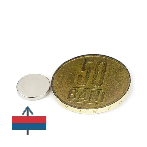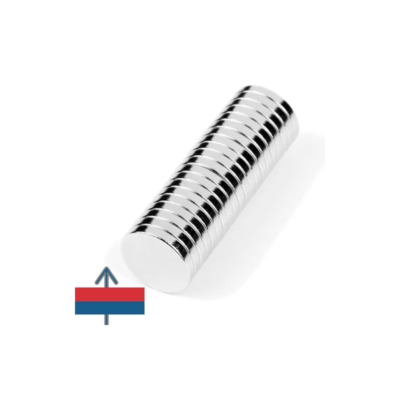 Мощни неодимови магнити, диск форма, покрити с никел, магнитизация N52, приблизителна сила 810 г.