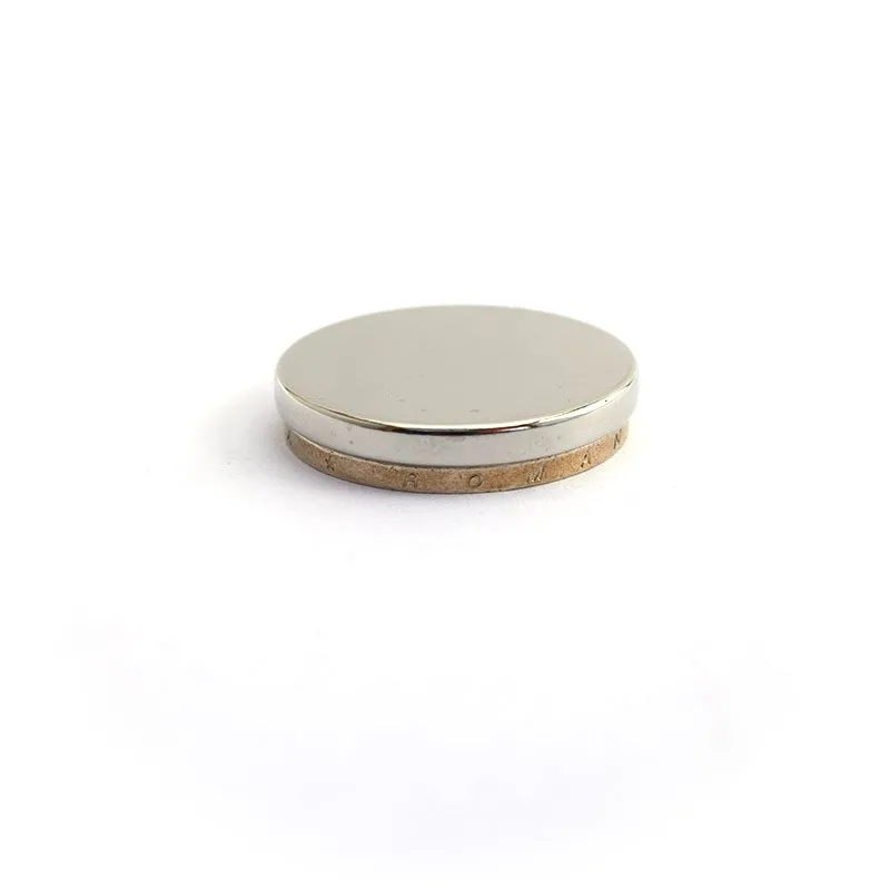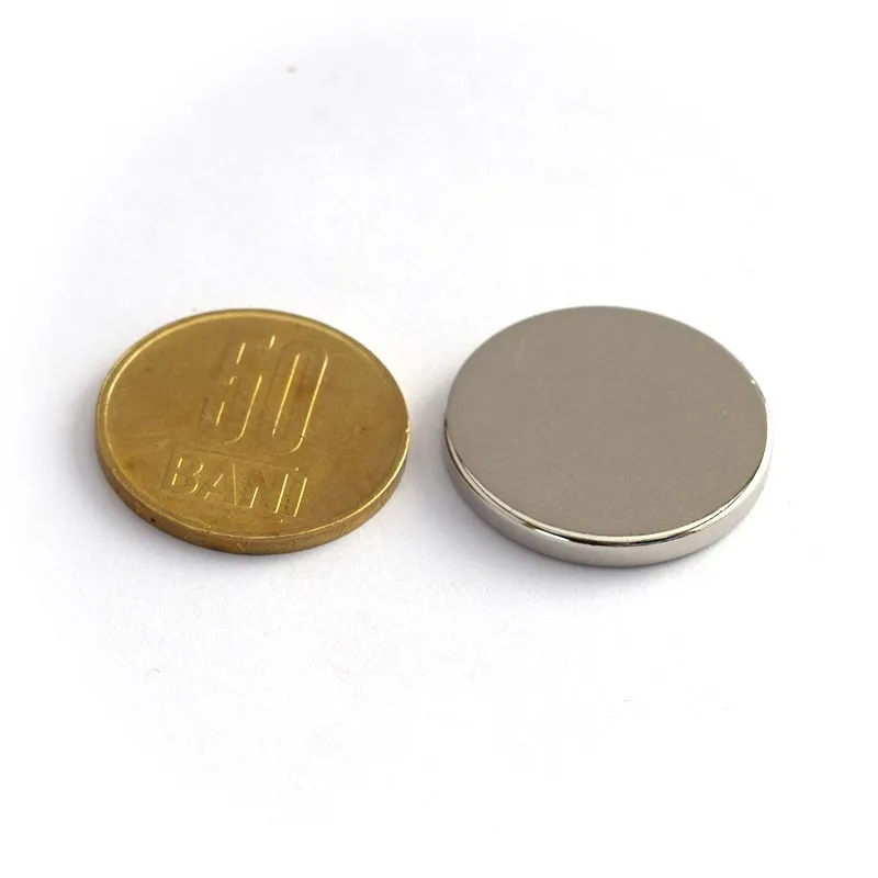 Мощни неодимови магнити, диск форма, покрити с никел, намагнитеност N42, приблизителна сила 1,2 кг. Идеални за използване като магнити за хладилник.