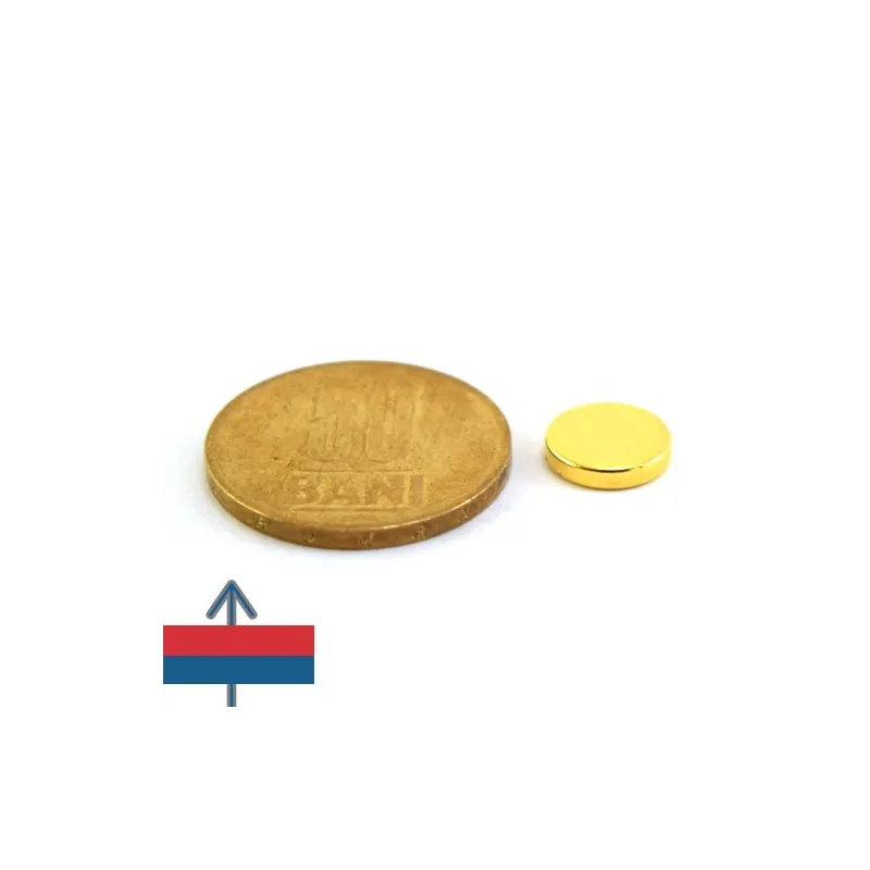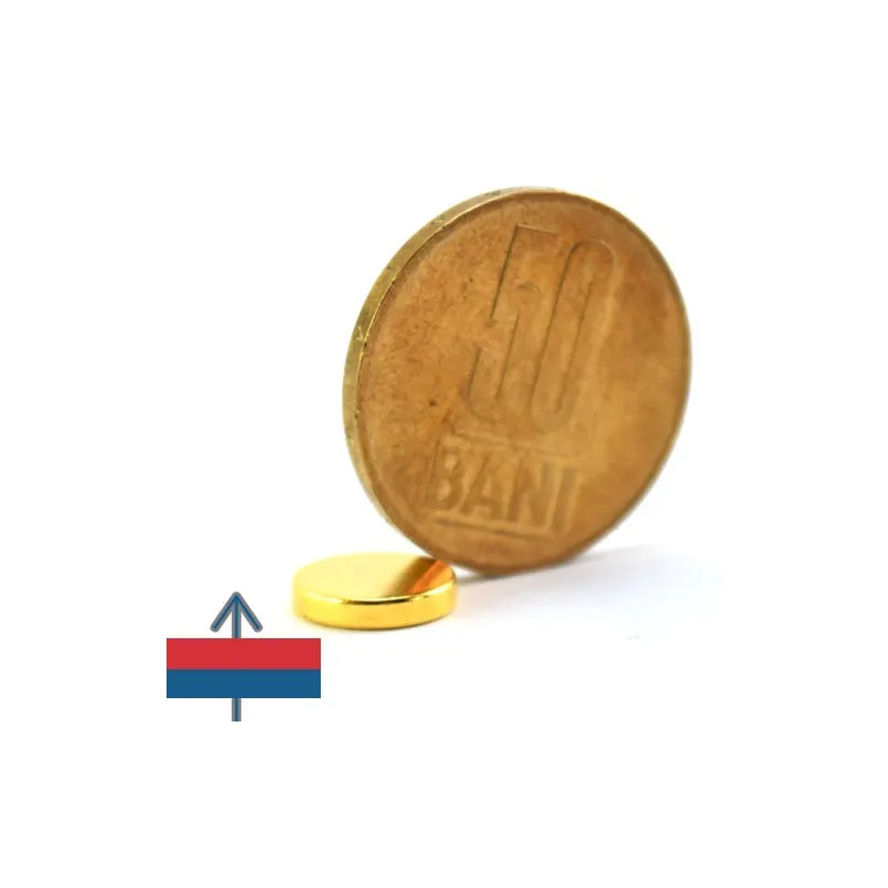Силен неодимов магнит, дискова форма, златно покритие, N42, приблизителна сила 1,2 кг.