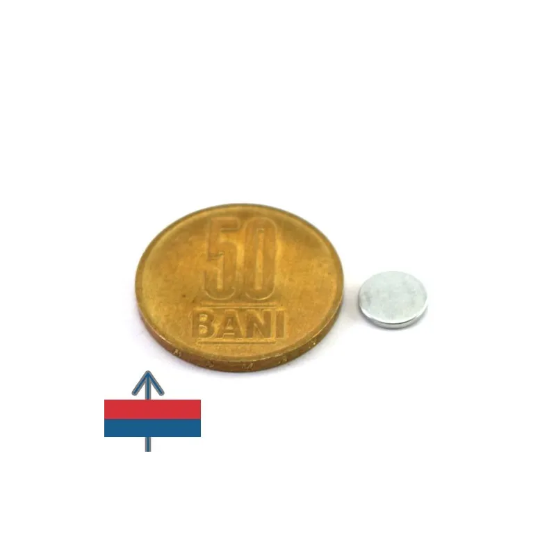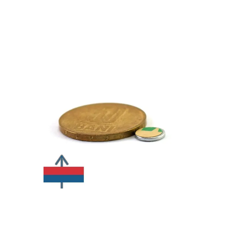 Неодимов магнит тип диск, покрит с поцинковано покритие, N45, с приблизителна сила 0,4 кг, самозалепващ се.