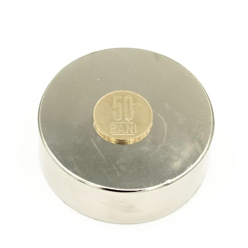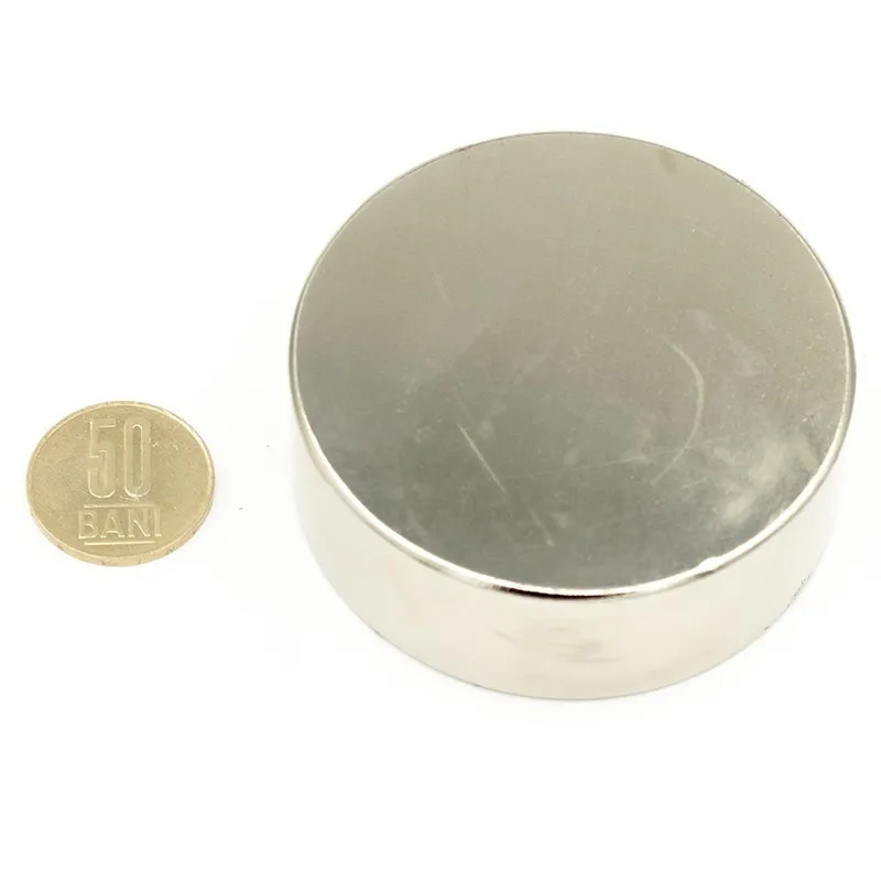 Силни неодимови магнити с форма на диск, никелирано покритие, намагнитване N52, сила на привличане 130 кг.