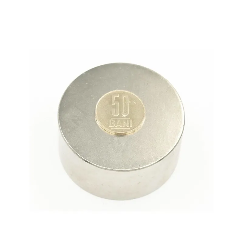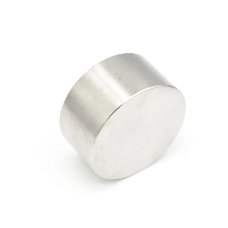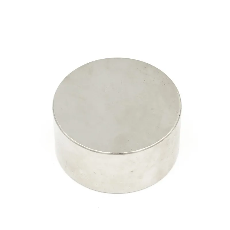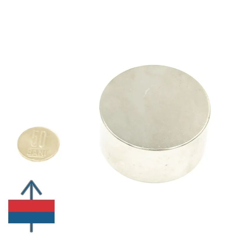 Силни неодимови магнити с форма на диск, диаметър 50 мм и височина 30 мм, покрити с никел, намагнитване N52, приблизителна сила 130 кг.