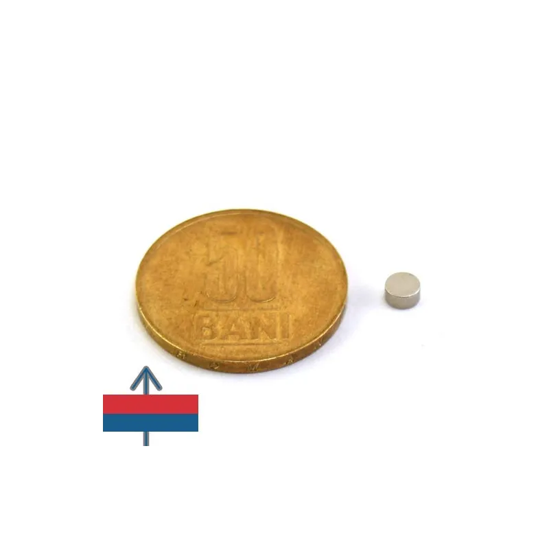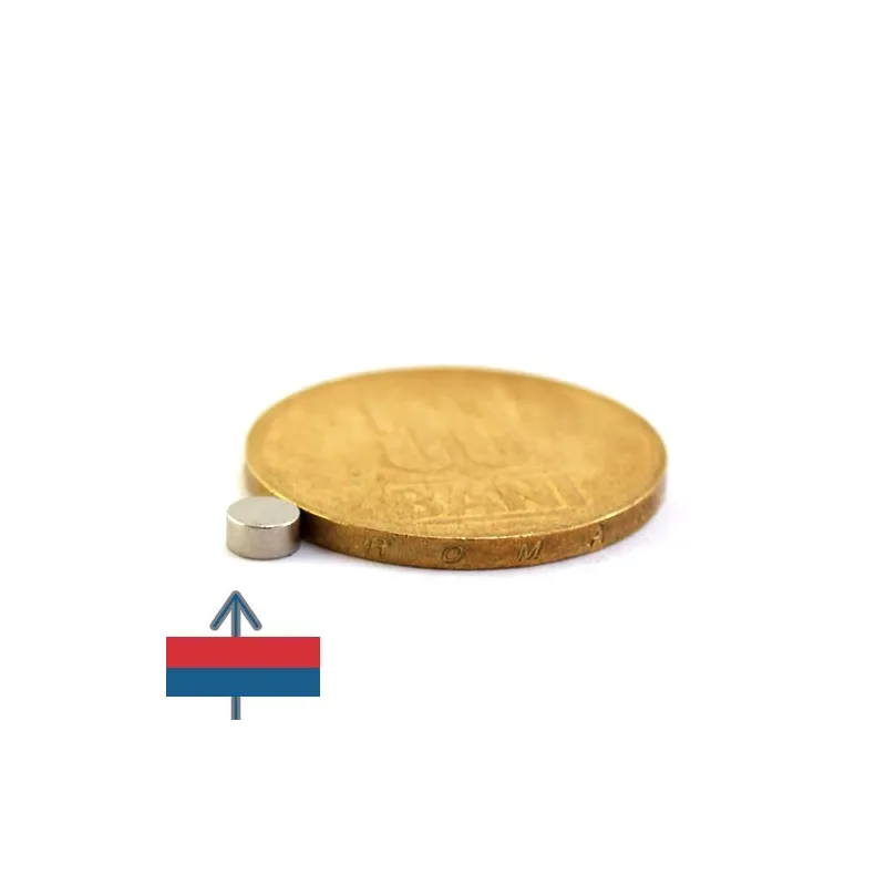 Силен неодимов магнит с форма на диск, покрит с никел, N52, с приблизителна сила 430 г.
