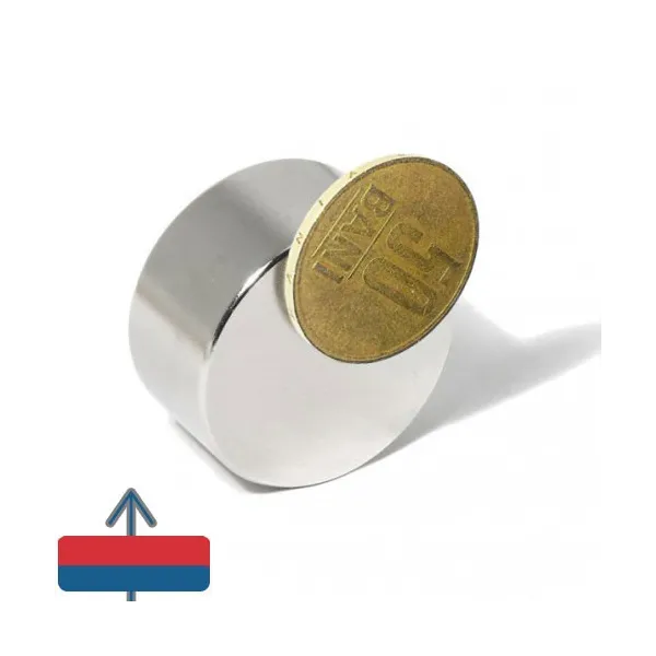 Силен неодимов магнит, дискова форма, никелирано покритие, N42, приблизителна сила 23 кг