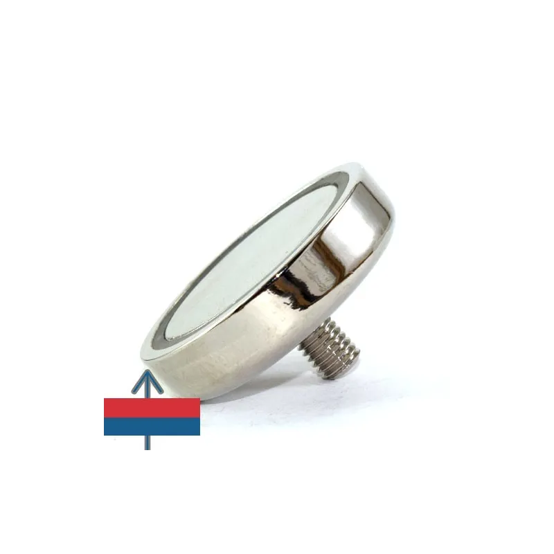 За разлика от грубите неодимови магнити като блокове, дискове или пръстени, неодимовите магнити тип "тенджера" са комплексни магнитни системи, тоест завършени магнитни продукти. Те са проектирани да максимизират магнитната сила при контакт, подобно на магнитна вендуза. Металната обвивка, в която е вграден магнитният сърцевина, служи както за защита, така и за късо съединение на магнитното поле. Следователно магнитите тип "тенджера" предоставят по-висока сила при контакт, но привличат слабо или изобщо не на разстояние. Ако търсите мощен магнит за приложения, изискващи привличане на разстояние, като металдетектори или магнитни сепаратори, НЕ избирайте магнит тип "тенджера", тъй като тези магнити няма да бъдат ефективни. За такива случаи предпочитайте неодимови блокове или дискове.