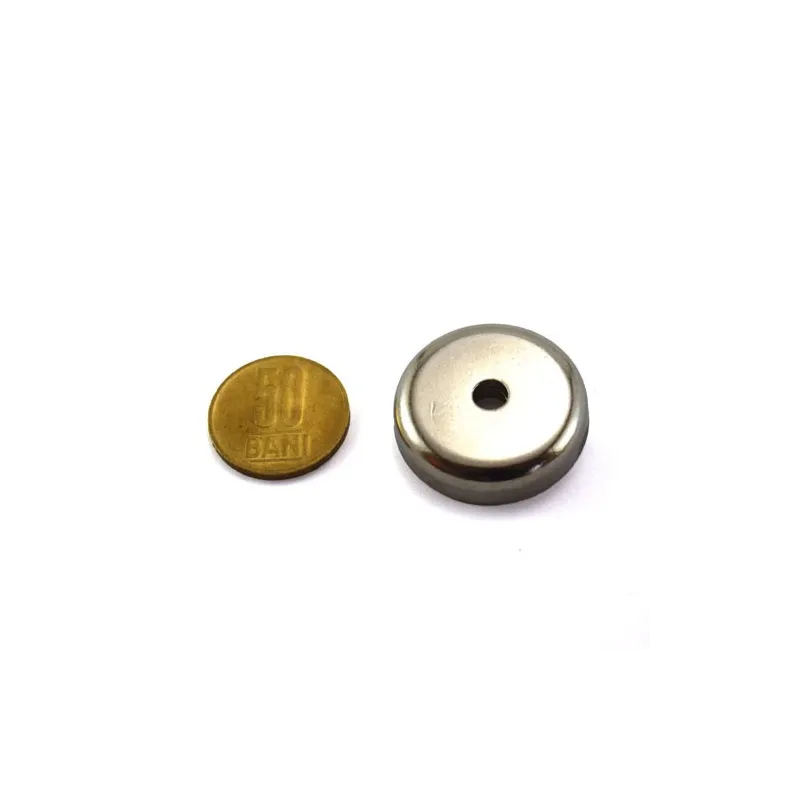 Магнит тип „тенджера“ с плоска форма, снабден с централен отвор, подходящ за винтове M5 (5 мм) с потънал глава. Корпусът е от стомана, покрит с никел, а ядрото е неодимов магнит. Изключително полезен за здраво закрепване на вашия проект. Използва се както в електронни устройства, така и в обработката на метали, производството на машини и съоръжения, както и в магазини и фабрики. Не се използва като алармен разделител, въпреки визуалната прилика, която може да ви заблуди.