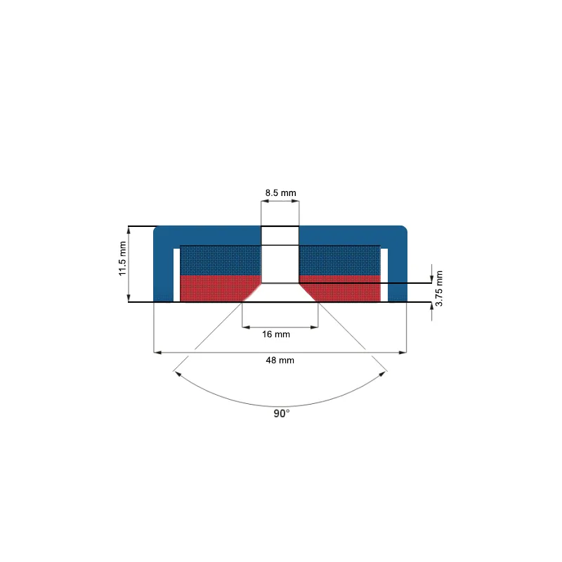 За разлика от грубите неодимови магнити като блокове, дискове или пръстени, магнитите тип „тенджера“ са завършени магнитни системи. Тези магнити са проектирани да максимизират магнитната сила при контакт, като магнитна вендуза. Металният корпус, в който е вграден магнитният елемент, служи както за защита, така и за късо съединение на магнитното поле. Поради това магнитите тип „тенджера“ осигуряват значително по-силна сила при контакт, но привличат слабо или изобщо не на разстояние. Ако търсите мощен магнит за приложения, изискващи привличане на разстояние, като металдетектори или магнитни сепаратори, НЕ избирайте магнит тип „тенджера“, тъй като те няма да бъдат ефективни. За такива задачи предпочитайте неодимови блокове или дискове.