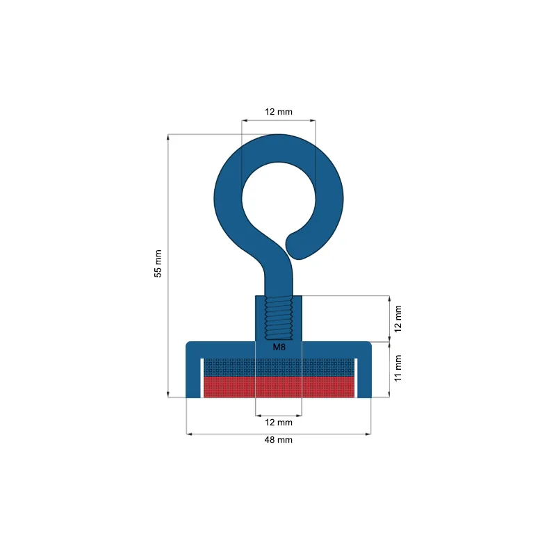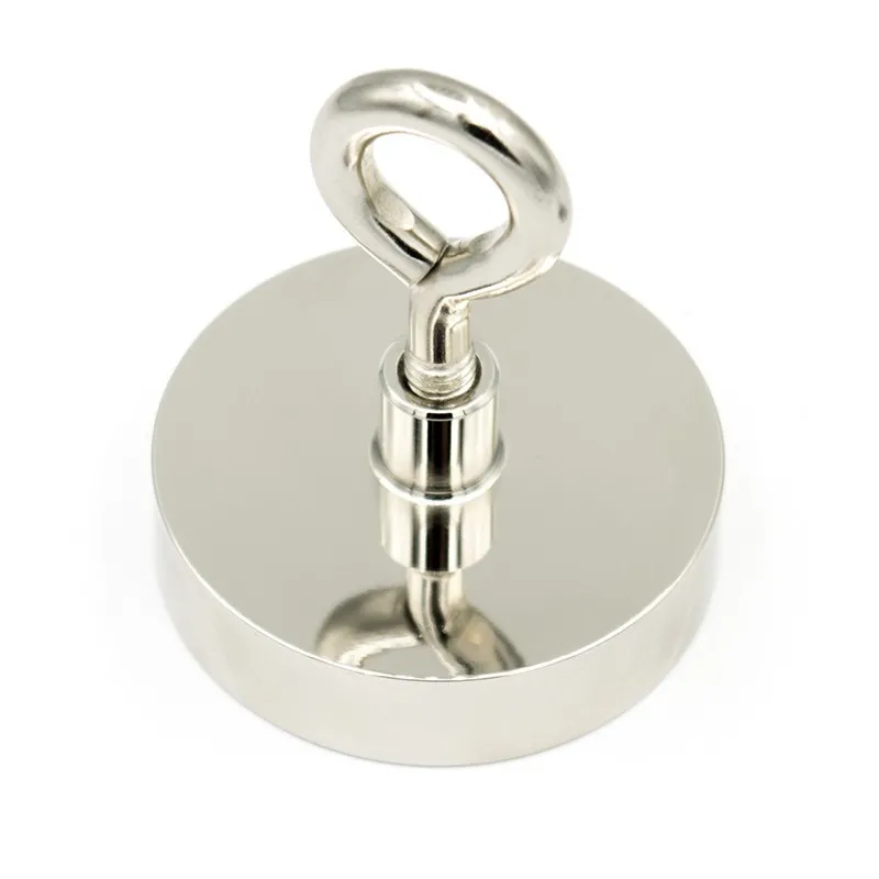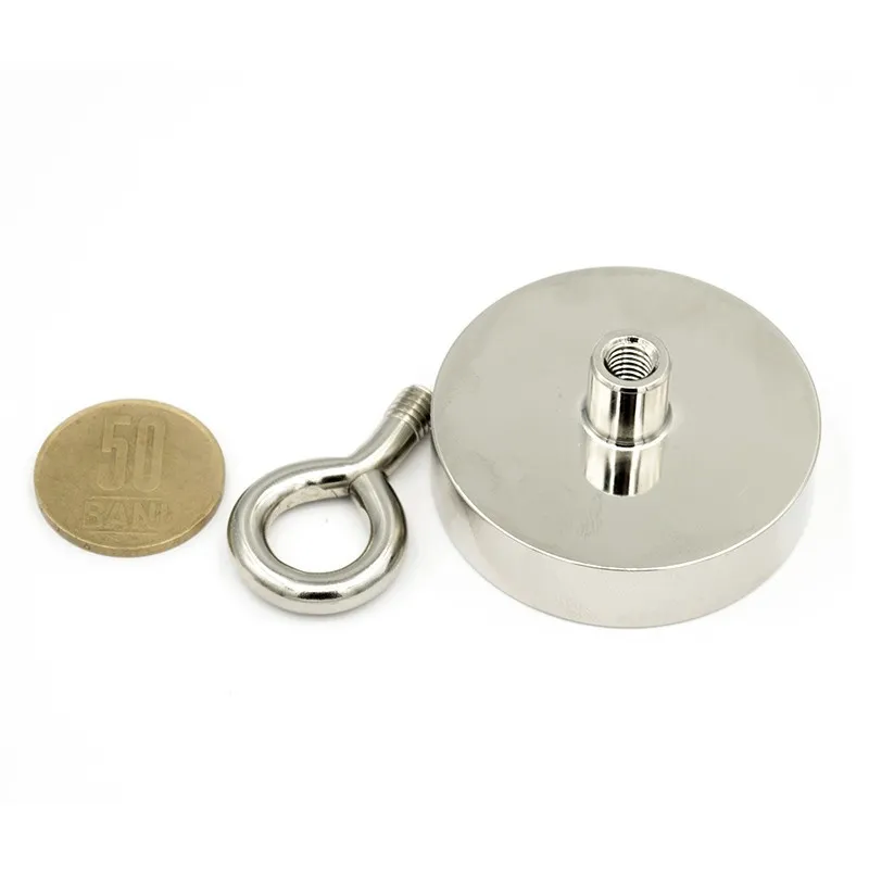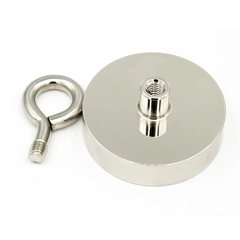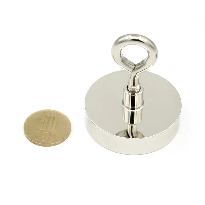 Неодимов магнит пот D 48 мм 65 кг с вътрешна резба и пръстеновидна кука STRONG