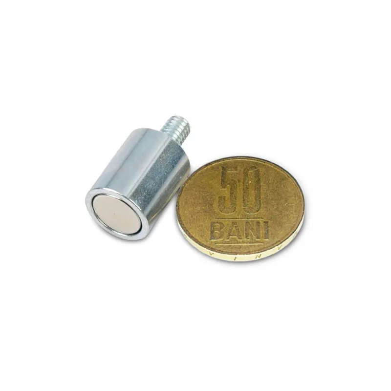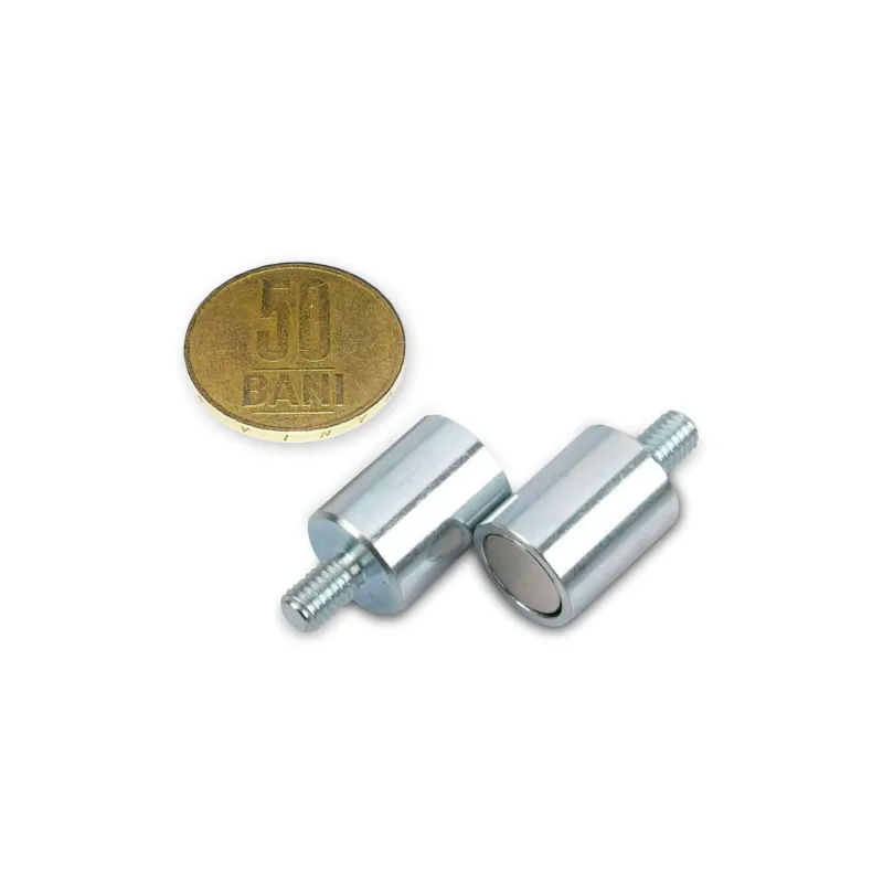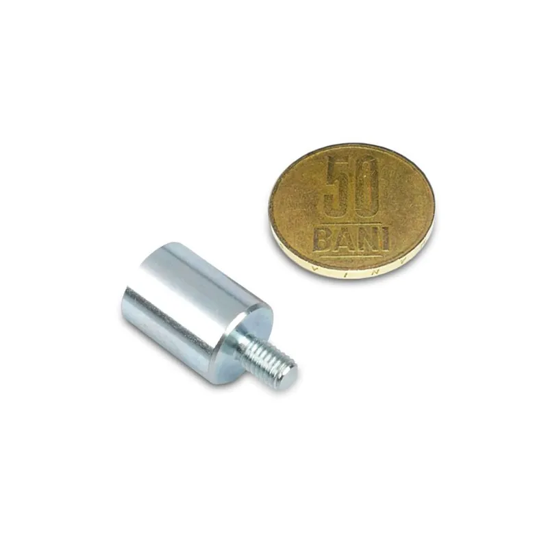 Цилиндричен магнит тип „тенджера“, снабден с външна резба с дължина 8 мм, стандарт M5x8. Корпусът е изработен от стомана и покрит с поцинкован слой, а сърцевината е неодимов магнит. Изключително полезен за здраво закрепване на вашия проект. Използва се както в електронни устройства, така и в обработката на метали, машиностроенето, както и в магазини и фабрики.