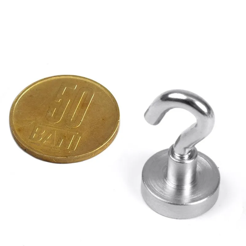 Силен неодимов магнит тип „тенджера“ с диаметър 16 мм и сила на задържане 8 кг, оборудван с кука. Тези неодимови магнити имат вътрешна резба, в която е завинтена кука.