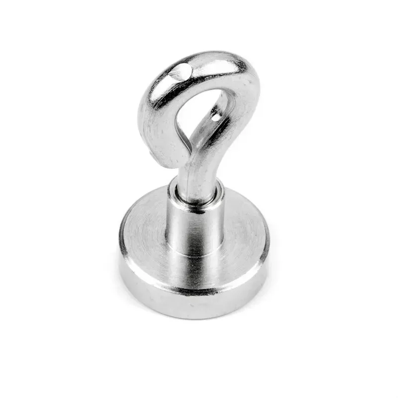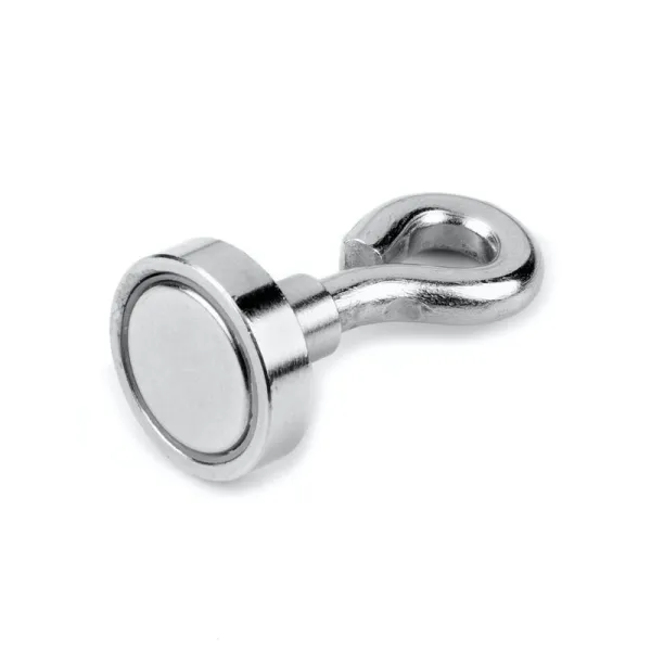 Силен неодимов магнит тип „тенджера“ с диаметър 16 мм и силa на задържане 8 кг, оборудван с пръстеновиден кука. Тези неодимови магнити имат вътрешна резба, в която е завинтена кука с капак, око или пръстен.